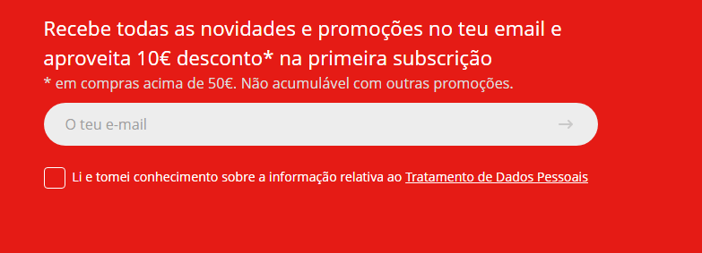 Subscrever e obténs um desconto de 10€ num compra superior a 50€.