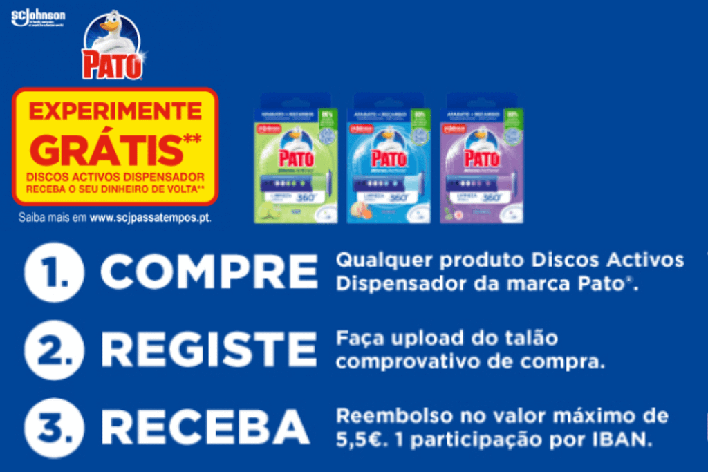 À semelhança de anos anteriores a SCJohnson tem um experimente grátis na compra de Discos Ativos Dispensador Pato, só é pena ser apenas para dispensadores e não existir para descargas, uma vez que apenas é válido o reembolso na compra de uma unidade de qualquer dispensador Pato® Discos Activos.