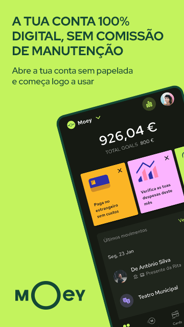 O Moey é um banco 100% online que pretende ao Crédito Agrícola, a conta é gerida através de uma aplicação no telemóvel e podemos pedir um cartão gratuito, as transferências SEPA também são gratuitas, ou seja, transferências para qualquer banco e país da UE pelo menos e tem também 40 transferências imediatas gratuitas por mês. A aplicação permite também fazer transferências Mbway, apenas com o nº de telemóvel e pagamentos de serviços.
