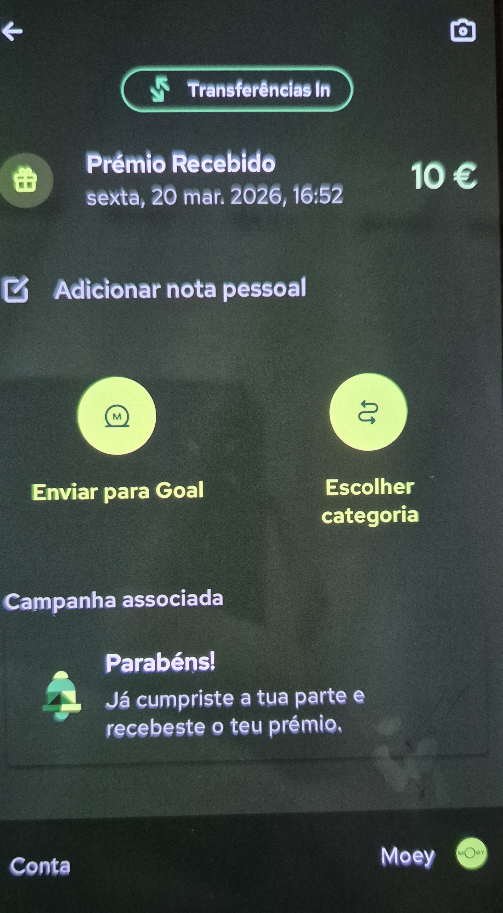 Os 10€ que recebi no mesmo dia do primeiro pagamento.