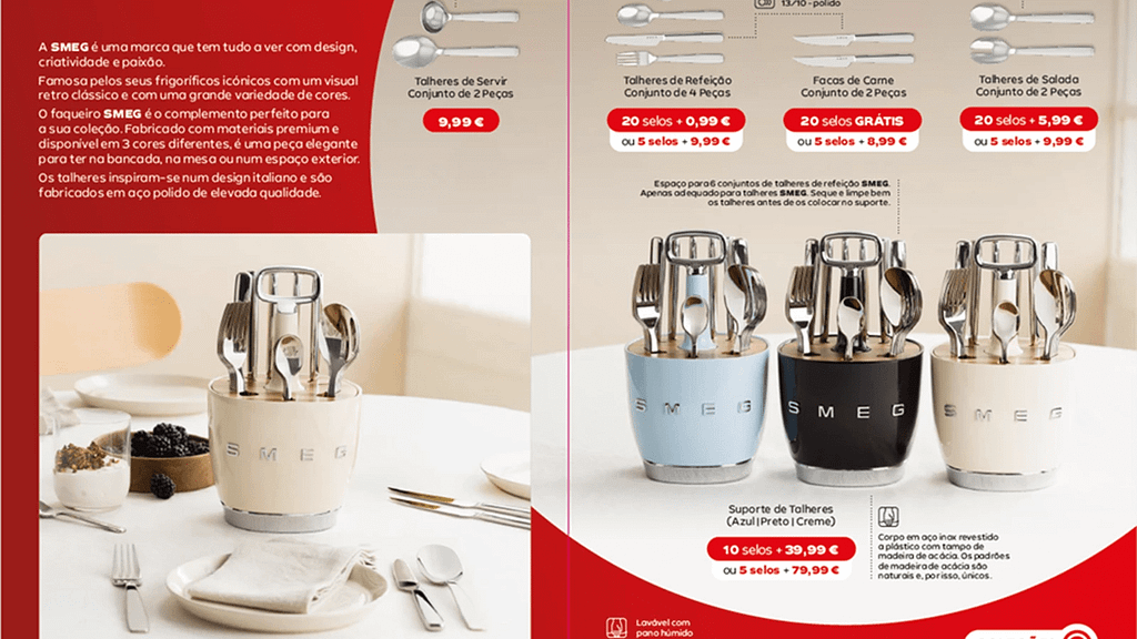Temos agora a nova campanha de talheres da SMEG, a decorrer de 17 de novembro de 2025 e 22 de fevereiro de 2026.
