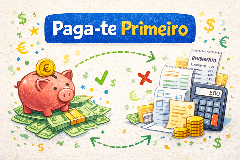 Pagar-te primeiro significa reservar uma parte do teu rendimento para ti — poupança, investimentos ou fundo de emergência — antes de pagares contas, rendas ou outras despesas.