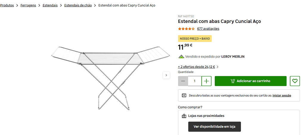 Consegui encontrar a bom preço no Leroy Merlin e passado algumas semanas encontrei o mesmo estendal a 13€ no Intermarché.